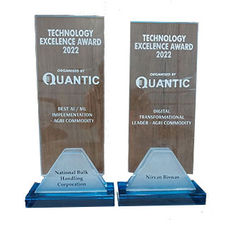 Award for Best AI/ML Implementation Agri Commodity and Award for Digital Transformational Leader Agri Commodity at Quantic India