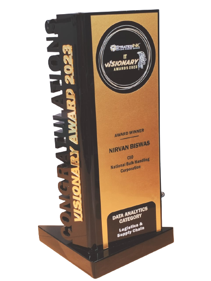 Nirvan Biswas wins IT Visionary Award 2023 under the Category: Data Analytics (Logistics & Supply Chain), by Vision 2023 - StrategINK