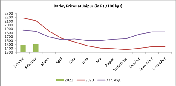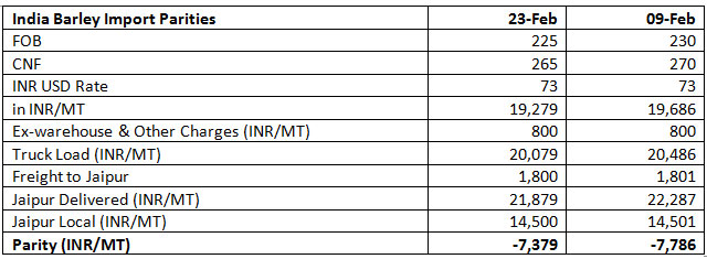 Currently, International market is on high side, the imported barley's Jaipur delivered prices are at Rs.21-22 per kg and imports are unviable with a disparity of around Rs.7.5 per kg