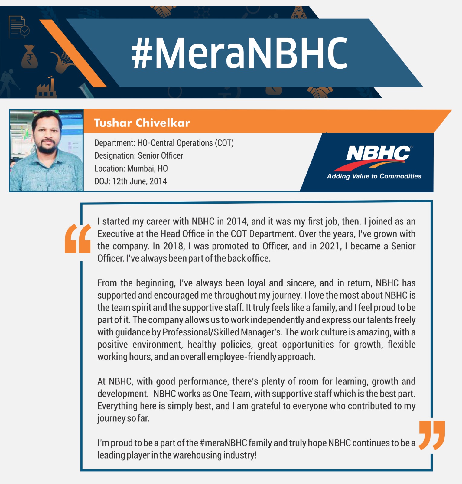 NBHC strongly believes in cherishing open communication at all times, across all levels. Varied communication channels such as Open House, Departmental Meets, e-HR, Group HR Communication, and e-mail facility have ensured that the HR team is always around the corner and is available to listen to and help human resources. Driven by commitment and aided by technology, quality HR practices make NBHC a great place