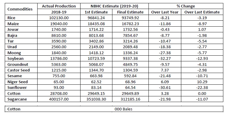 The table below shows the details of the final estimate for the 2019-20 Kharif crop (In 000’ MT)